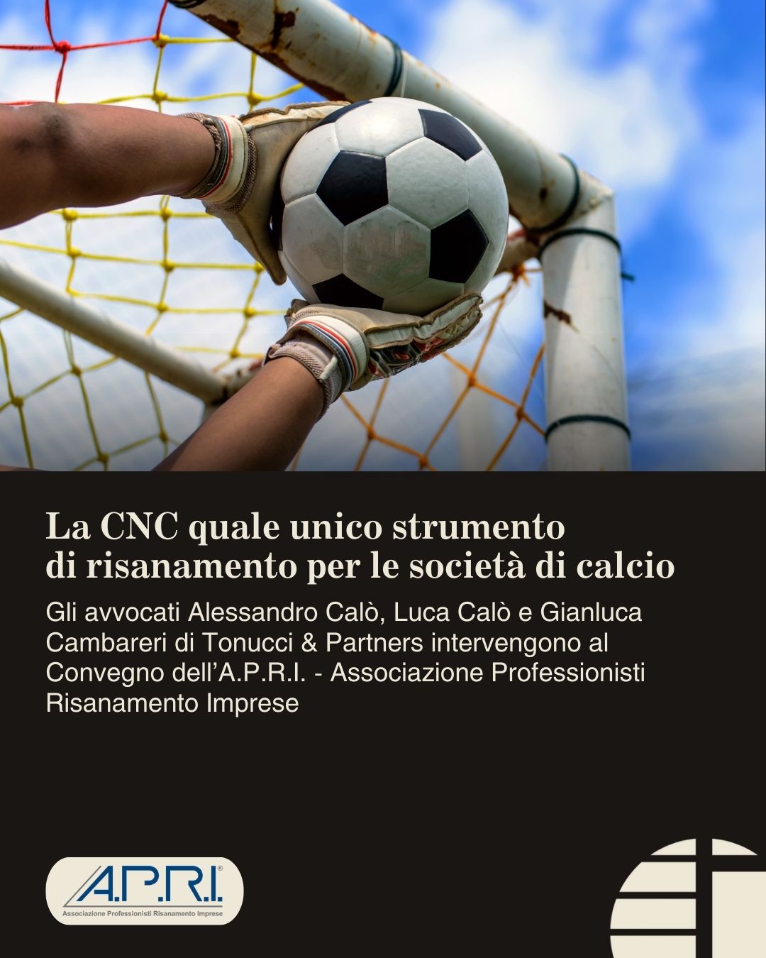 La CNC quale unico strumento di risanamento per le società di calcio. Gli avvocati Alessandro Calò, Luca Calò e Gianluca Cambareri di Tonucci & Partners intervengono al Convegno dell’A.P.R.I. – Associazione Professionisti Risanamento Imprese.