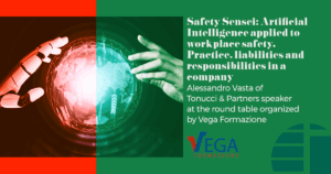 Artificial Intelligence and safety at work Vega Formazione event “Safety Sensei: Artificial Intelligence applied to workplace safety. Practice, liabilities and responsibilities in a company”