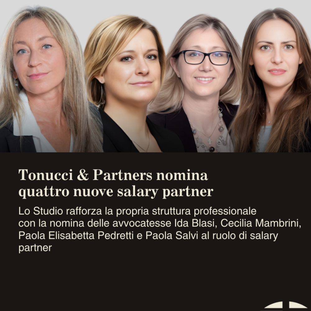 Tonucci & Partners nomina quattro nuove salary partner Tonucci & Partners rafforza la propria struttura professionale con la nomina di Ida Blasi, Cecilia Mambrini, Paola Elisabetta 5 Febbraio 2026